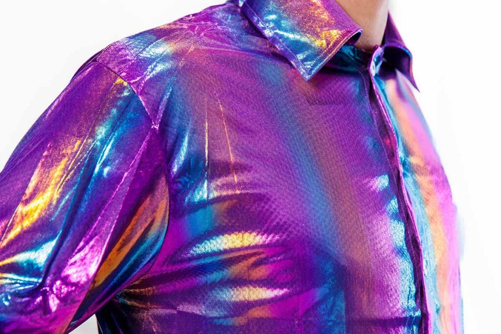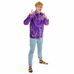 Deze kleurrijke regenboog disco glitter blouse is perfect voor een 70’s avond of feestje maar kan ook gebruikt worden met de Pride! De blouse is geschikt voor heren en is gemaakt van 100% polyester met een satijnen look. Extra leuk om te dragen met carnaval of een themafeestje. Met deze party blouse maak je jouw feestoutfit helemaal af!